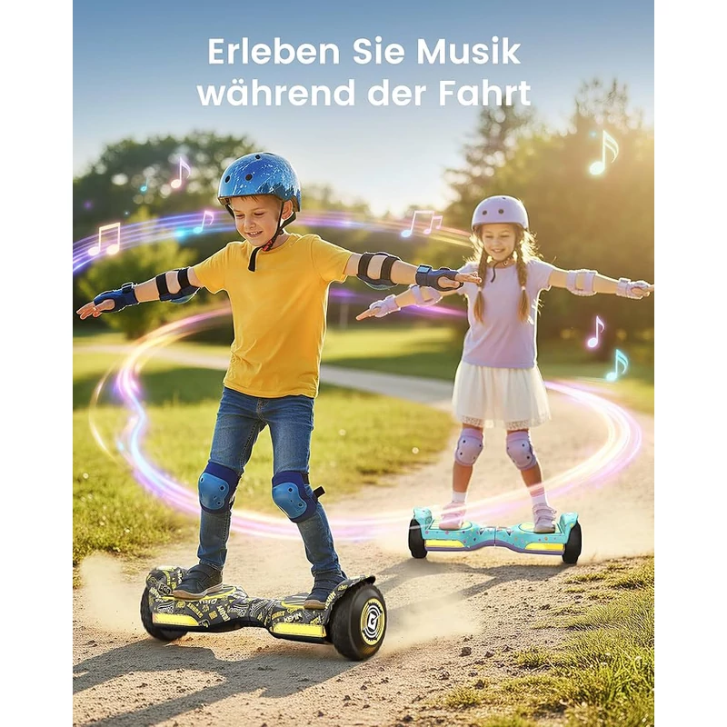 Körülbelül 12 km/h maximális sebességével a hoverboard stabilan teljesít a szabadidős szegmensben – elég gyors gyerekeknek és nyugodt felnőtt tekerésekhez.
